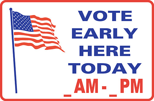 VOTE HERE EARLY TODAY AM-PM WITH FLAG H-Stake Sign (SG-112D2)