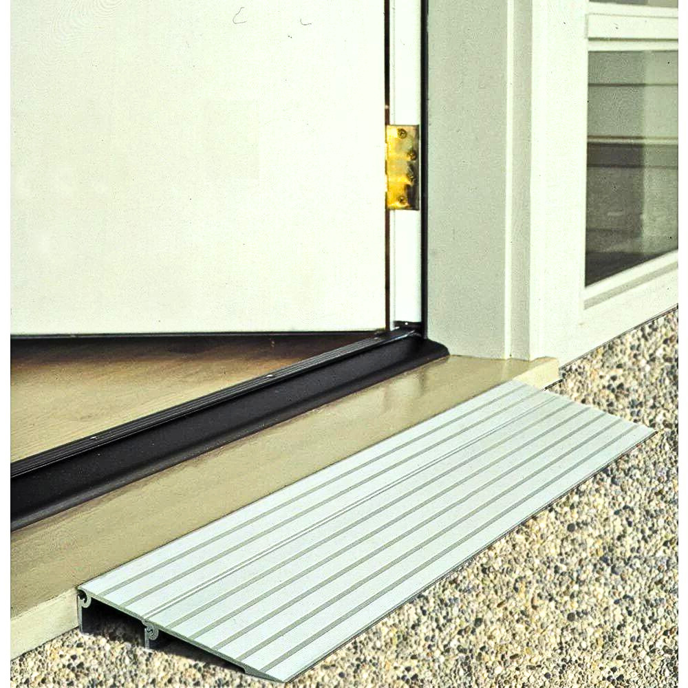 Features: This durable freestanding ramp is 34" wide and suitable for doorways, sliding glass doors, and raised landings. It is ideal for wheelchairs, walkers, and cane users. It is made of anodized aluminum and is approved for indoor/outdoor use.