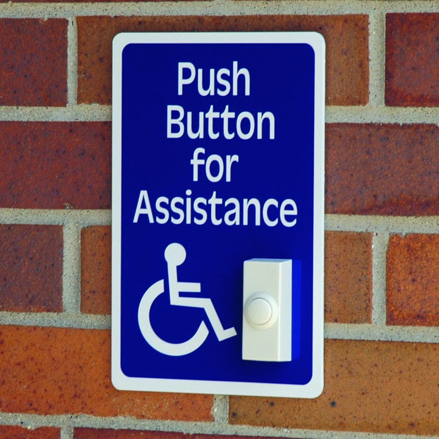 El timbre de puerta inalámbrico se adhiere a la pared y ayuda a los votantes a ingresar a los recintos y entradas de votación. Alcance de 100 pies. VA-90