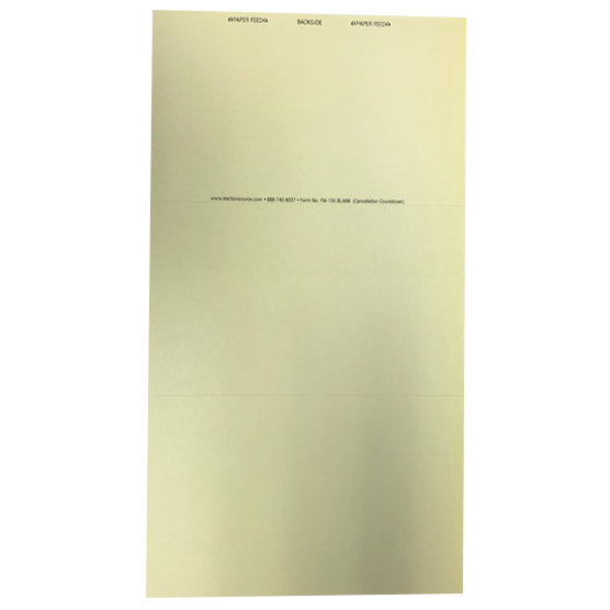 Tarjeta de cuenta regresiva para cancelación de QVF. Blank Yellow, tríptico, puntuado dos veces para plegar. Tamaño total: 6 "de ancho x 10-7 / 8" de alto. Produzca cualquier tarjeta de cuenta regresiva de cancelación personalizada para su comunidad y el votante cuyo estado está verificando. No es necesario almacenar varias tarjetas preimpresas diferentes. El servicio de asistencia técnica de QVF le enseñará a imprimir estas tarjetas. Paquete de 100. FM-130 en blanco
