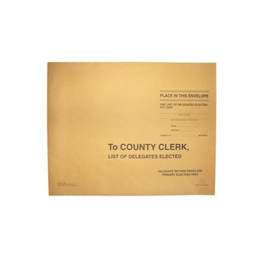 Sobre de la lista de delegados electos, al secretario del condado. Solo para elecciones primarias. 14 1/2 '' x 11 1/2 ''. Manilla en color con sello engomado en el costado. FM-940