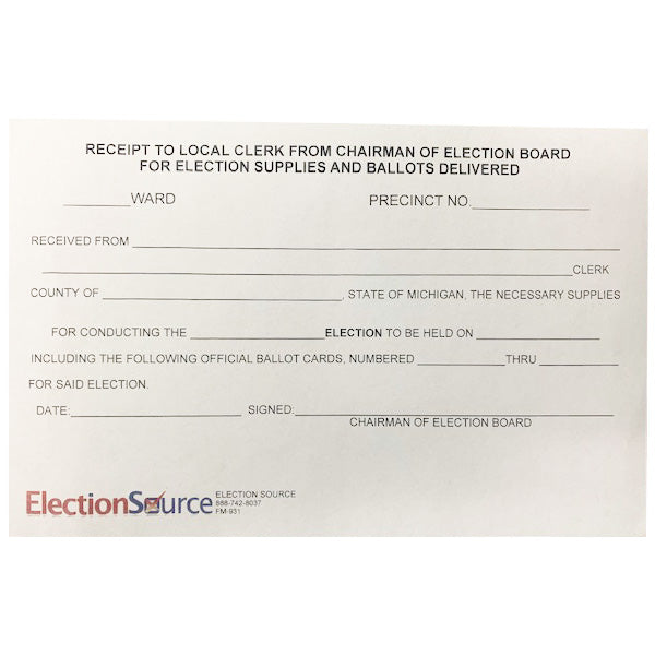 Recibo al secretario local del presidente de la junta electoral. 1 por paquete FM-931