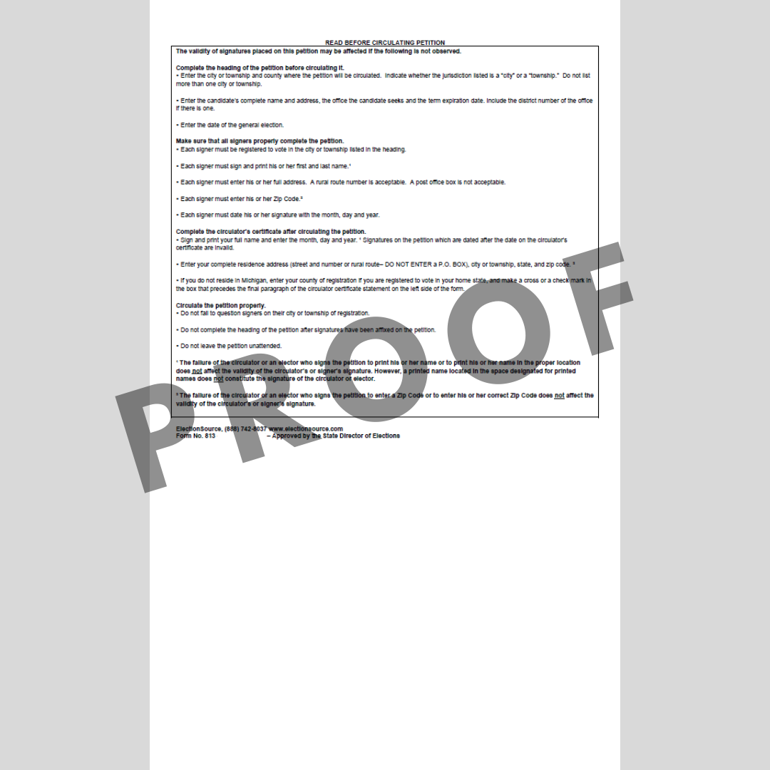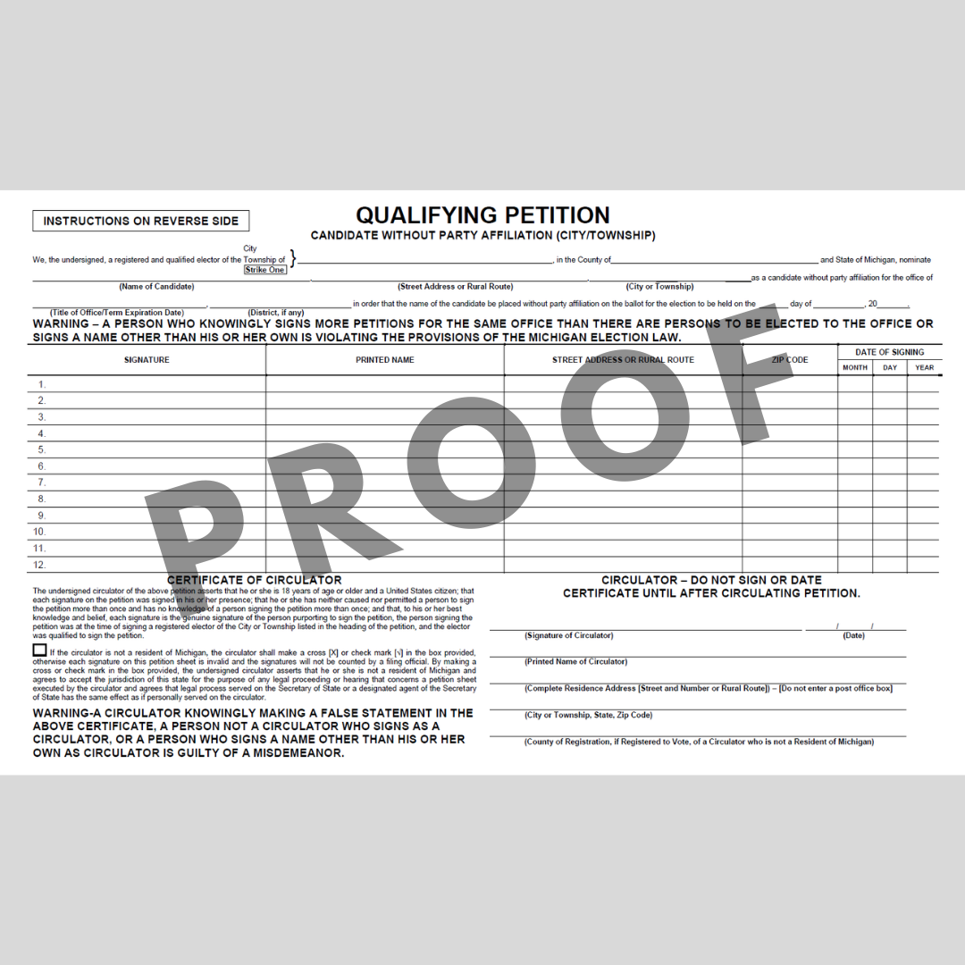 Candidato de petición calificado sin afiliación a un partido (ciudad / municipio). 50 por paquete