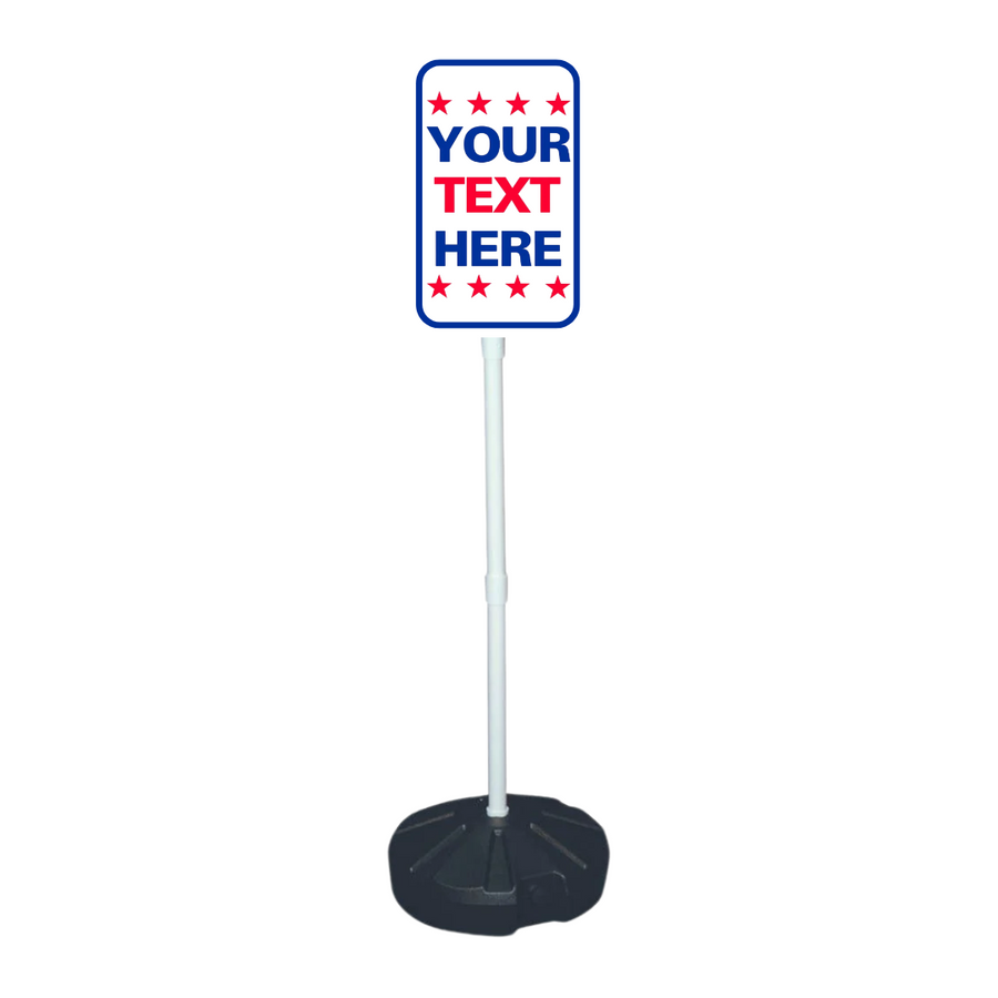 El letrero de 11 "de ancho x 17" de alto está hecho de plástico de poliestireno para todas las condiciones climáticas y se adhiere fácilmente al soporte y la base rellenable (SG-H) que se vende por separado. SG-701H