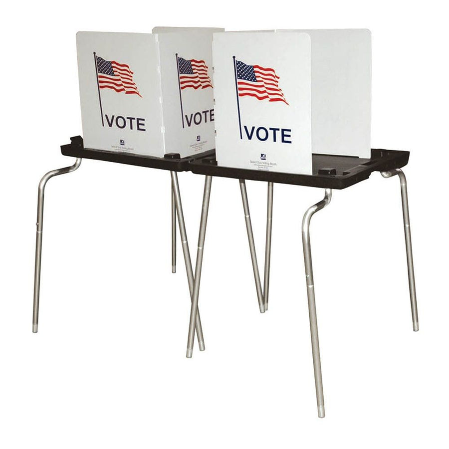 ¡DOS STANDS POR EL PRECIO DE UNO! ¡Hecho de materiales reciclados aquí en los EE. UU.! Esta cabina viene en su propia caja de plástico resistente y de alto impacto que cuando se pliega mide solo 23.5 '' de ancho x 27.5 '' de profundidad x 3.5 '' de grosor, lo que le ahorra hasta un 50% en espacio de almacenamiento. La cabina de votación Select Duo viene con dos paneles laterales de plástico corrugado. Esta cabina pesa aproximadamente 23 libras y la superficie de escritura mide 33 ''. Viene con ocho patas de aluminio accesibles para discapacitados, cuatro rectas y cuatro curvas, que se unen fácilmente y están acompañadas de una garantía de dos años. También viene con dos ensamblajes de luz LED instalados, uno en cada pantalla de privacidad. Los LED pueden durar hasta diez veces más que las bombillas convencionales y son fríos al tacto. Número de artículo: VB-204