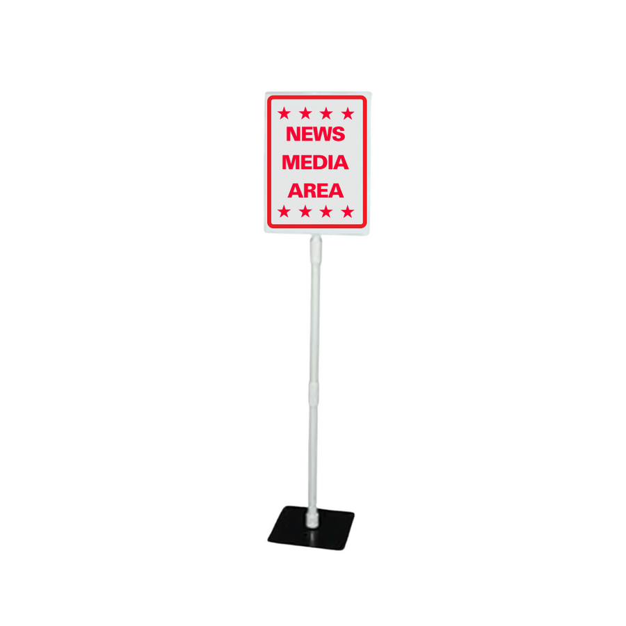 Panel frontal de 9 1/2 "de ancho x 11" de alto hecho de plástico de poliestireno. Esta señal se puede colocar en 3 alturas diferentes; 16 ", 28 1/2" o 41 "utilizando las extensiones provistas, ya sea de una vez o por sí mismas. El letrero y todas las extensiones provistas encajan fácilmente en la base de 7" x 7 "que se encuentra en la parte superior de una mesa. SG -220J