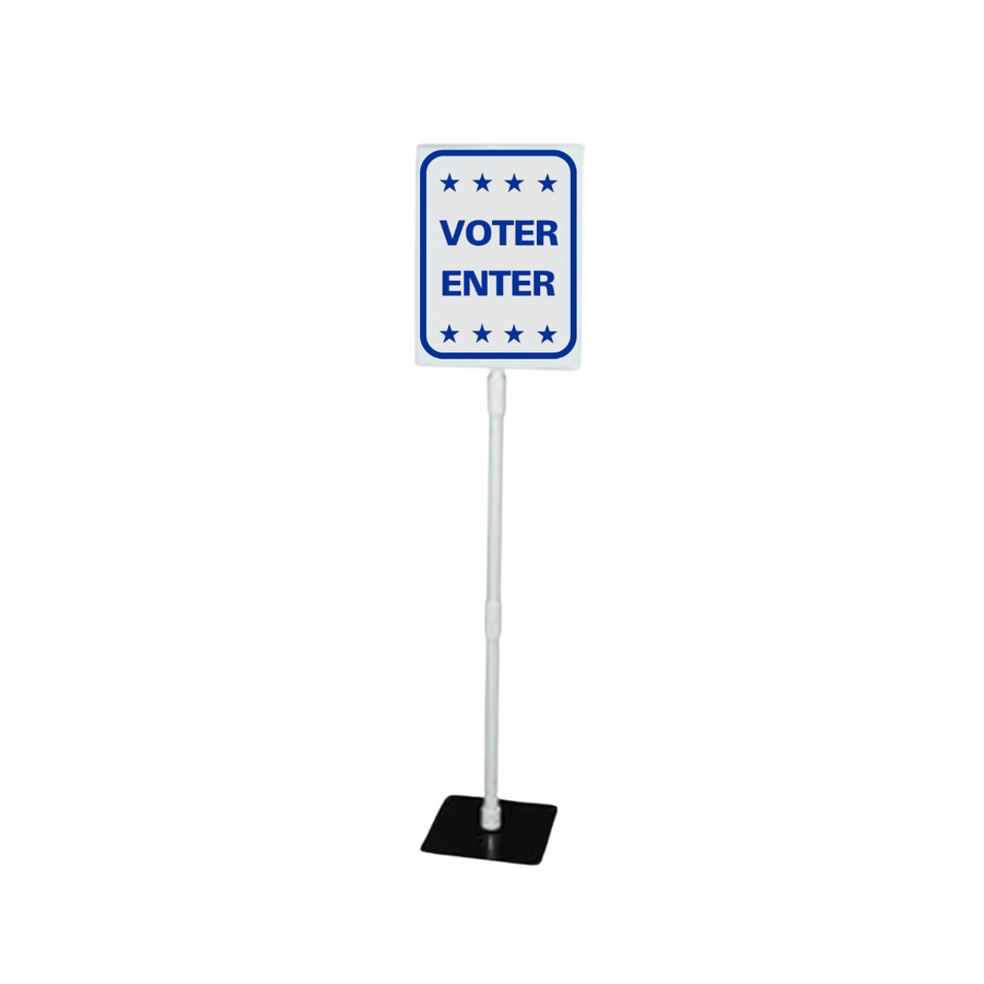 Panel frontal de 9 1/2 "de ancho x 11" de alto hecho de plástico de poliestireno. Esta señal se puede colocar en 3 alturas diferentes; 16 ", 28 1/2" o 41 "utilizando las extensiones provistas, ya sea de una vez o por sí mismas. El letrero y todas las extensiones provistas encajan fácilmente en la base de 7" x 7 "que se encuentra en la parte superior de una mesa. SG -215J