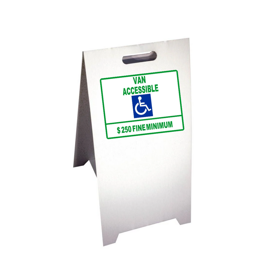 Estacionamiento para votantes con letrero en forma de A con símbolo de discapacidad