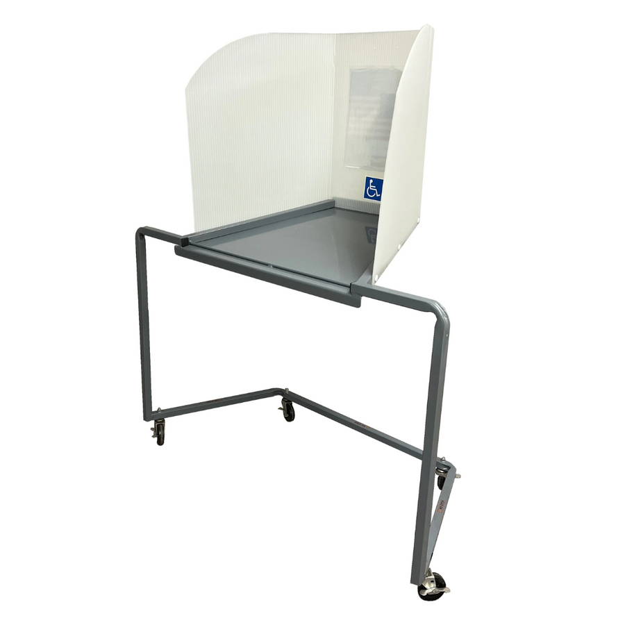 La cabina de votación patentada ReadyVote HCP no requiere elevación, instalación ni montaje. ¡Enróllalo y empieza a votar! El 9C se adapta a todos los tamaños de boleta estándar tanto en vertical como en horizontal. El innovador diseño de anidamiento de una pieza también ofrece una solución de almacenamiento compacta y que ahorra espacio para esos almacenes reducidos. 30 "x30" x60 "VB-RV9C-HCP