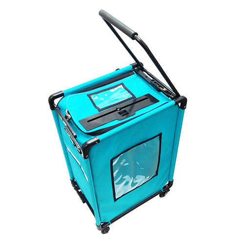 Urna de votación sobre ruedas con ranura para boletas de 10.5 "sellable. Tiene una ventana de identificación frontal de 8.5" x 11 "y una ventana de identificación superior de 4" x 6 ". Tiene capacidad para más de 1500 boletas y colapsa plana. Artículo BA-9217