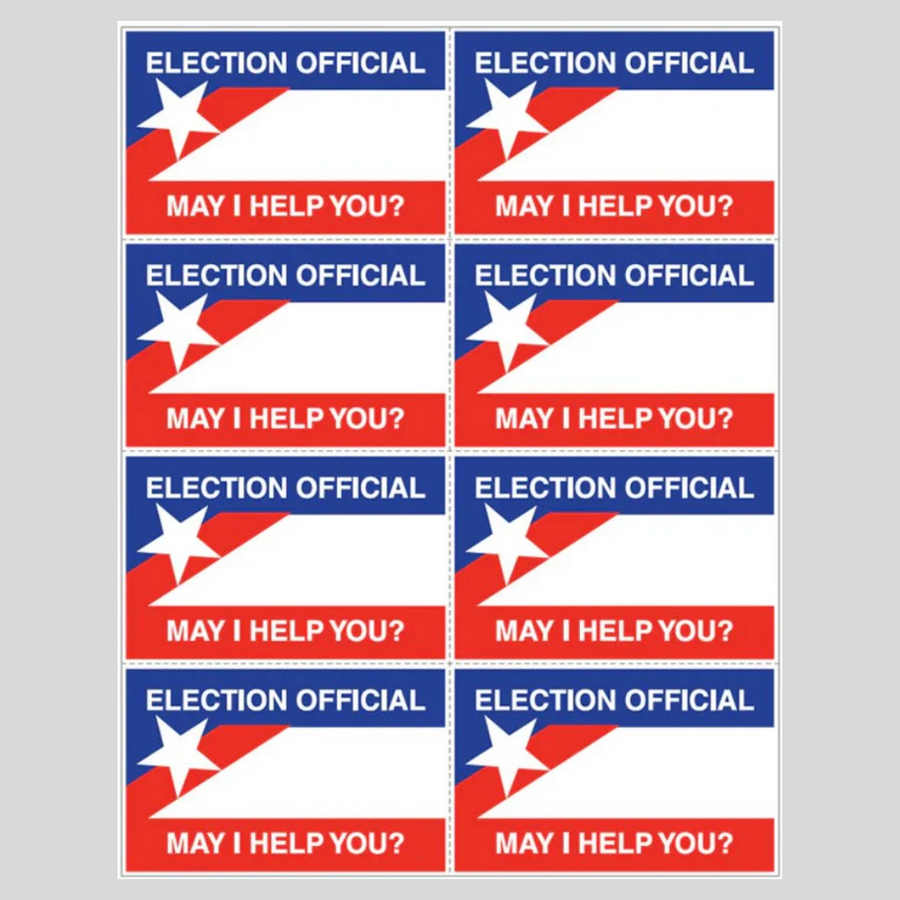 Kit de insignias oficiales de elecciones. Incluye 10 soportes con clip y 16 insertos por kit. Perforados entre cada inserto y son aptos para impresoras láser y de inyección de tinta. PS-955