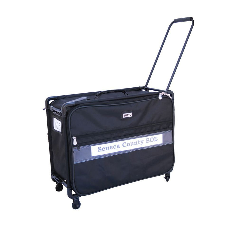 TUTTO Bolsa de transporte de suministros / papeletas de distrito sobre 4 ruedas. 5 ventanas de identificación, cerradura HASP, apila 150 libras con correas incorporadas, se pliega a 3 "y tiene capacidad para más de 2500 boletas. Dimensiones 24" L x 18 "H x 12" D Artículo # BA-111