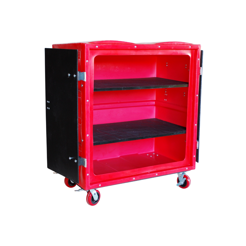 Este carro de elección mediano cuenta con puertas con cerradura, dos estantes, ruedas de 6 ", manijas de agarre de 13" y bolsa para documentos. Capacidad de peso de 950 lb. peso del carro. 125 libras Dimensiones exteriores 48 "L x 29.5" W 56 "H. Volumen interno 34 pies cúbicos. CT-RTC-4829H6
