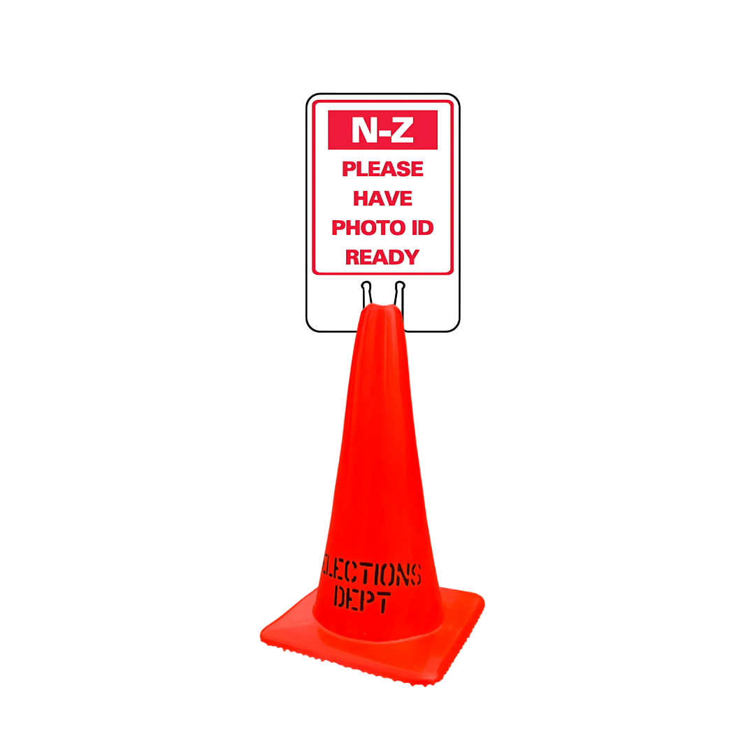 Los gráficos están en UN lado de este letrero de 9 "W x 11" H hecho de plástico de poliestireno para todas las condiciones climáticas. Cada letrero encaja perfectamente en la parte superior de los conos de tráfico naranja estándar que ofrecemos (CC-105, CC-101, CC-106). SG-317I1
