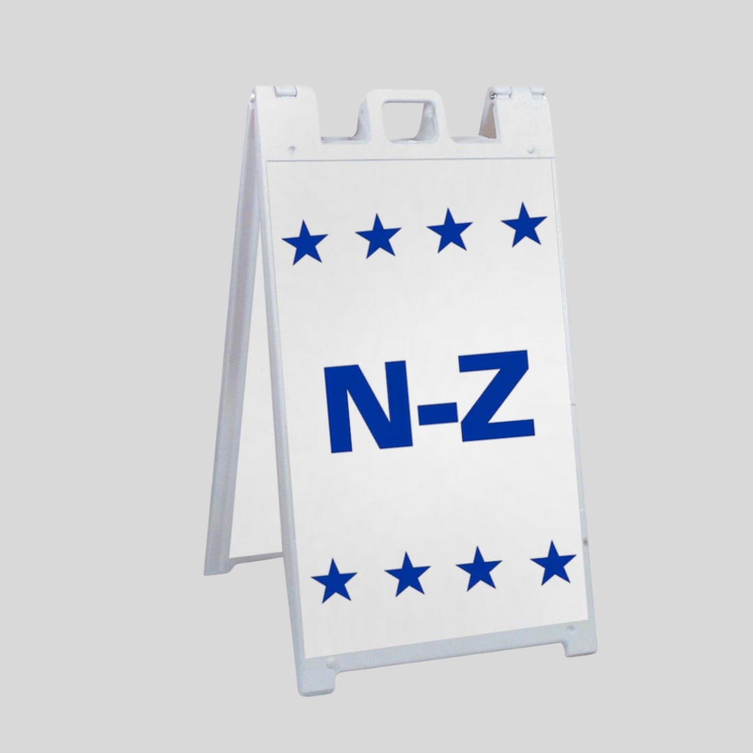 La cara del letrero de 24 "de ancho x 36" de alto está hecha de plástico corrugado para todas las condiciones climáticas y se adhiere fácilmente al marco en A grande (SG-B) que se vende por separado. SG-310B
