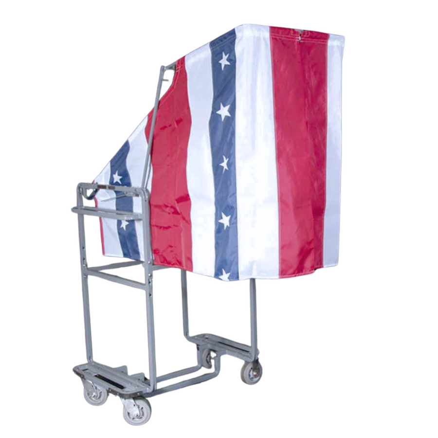 Features: This cart features a unique design that holds today's ballot boxes, eliminating tipping by staff. Its patent-pending privacy curtain allows for a classic secret ballot experience and deploys easily in two steps—no lifting or assembling the precinct required!