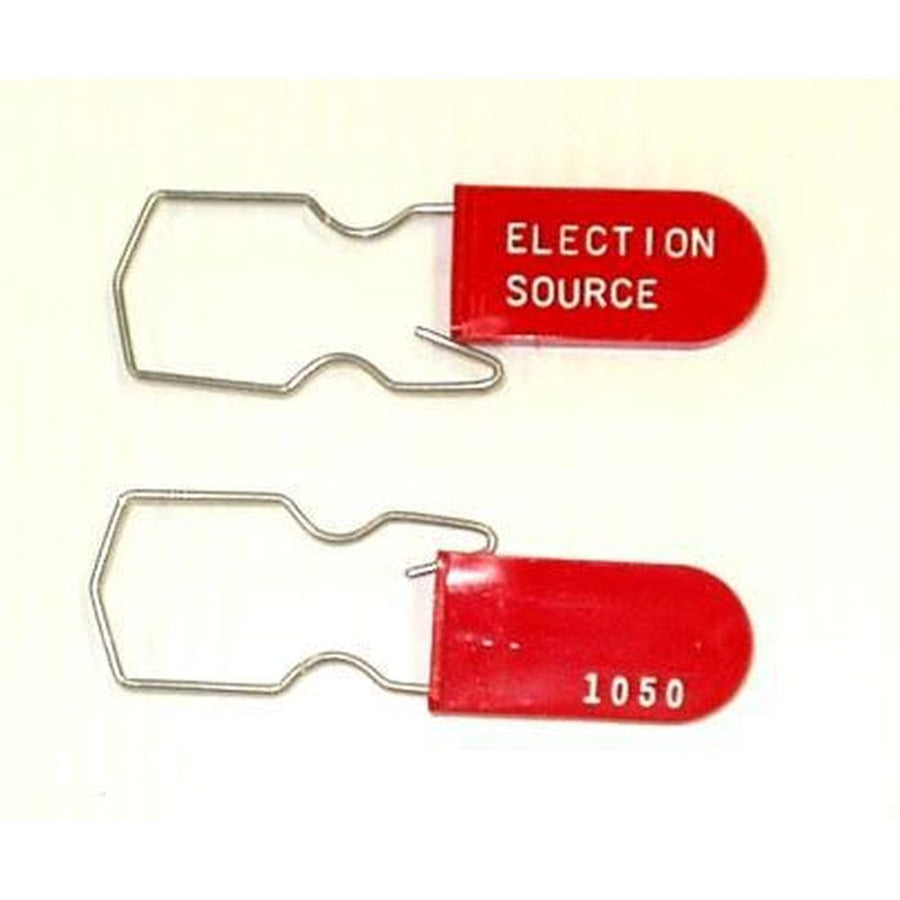 Features: Red and numbered, this seal is made of durable plastic and features a galvanized wire hasp that can break away by hand, without needing wire cutters. It has a breaking strength of 70 pounds and comes in a pack of 25.